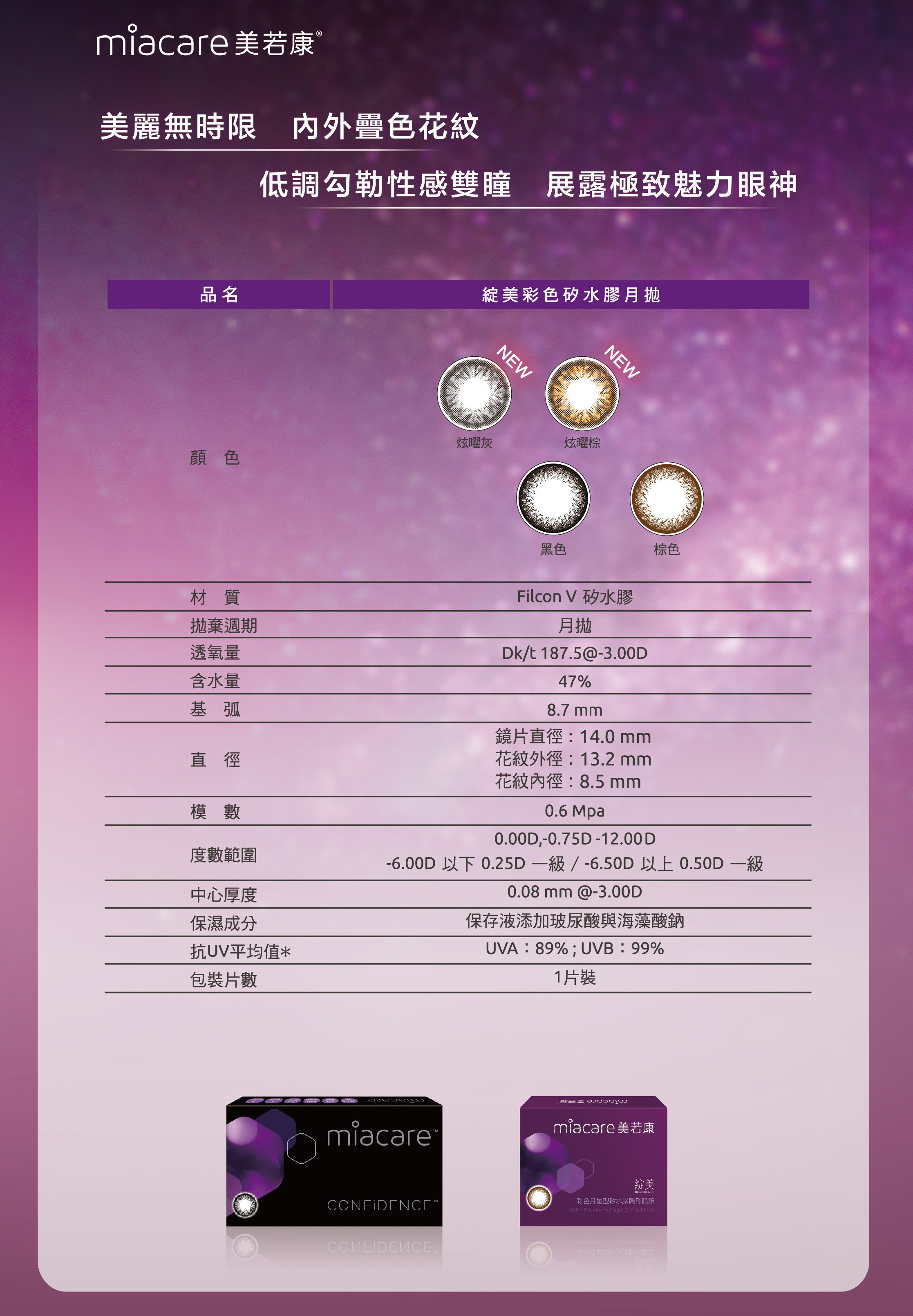 🔹鏡片直徑14.0 著色直徑13.2 基弧8.7 含水量47%